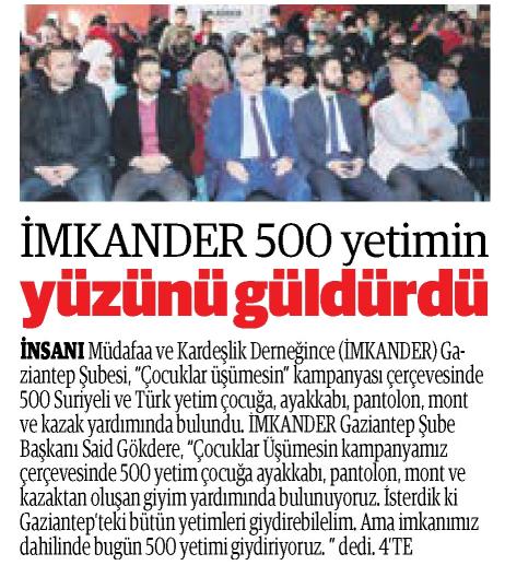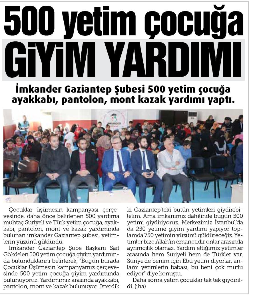 Gaziantep'te 500 yetim çocuğa giyim yardımı - » Karar «