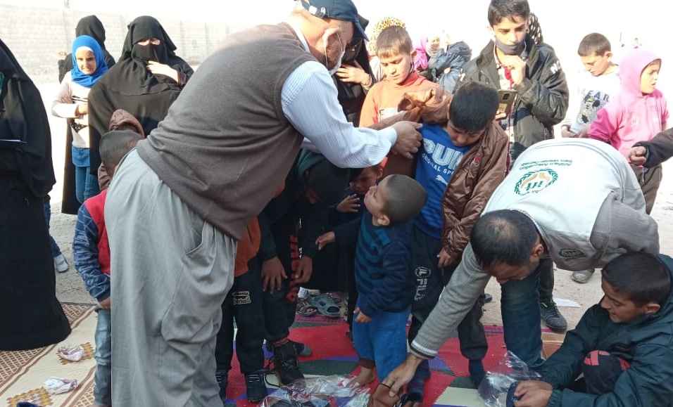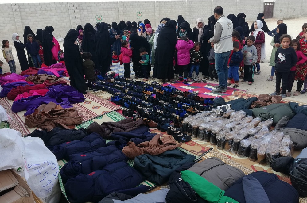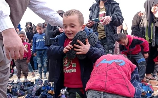 Ekiplerimiz, Suriye'nin özgürleştirilmiş bölgelerinden bulunan kamplarda 5 bin çocuğa mont, bot, hırka ve eldiven gibi kışlık giysi yardımı dağıttı.