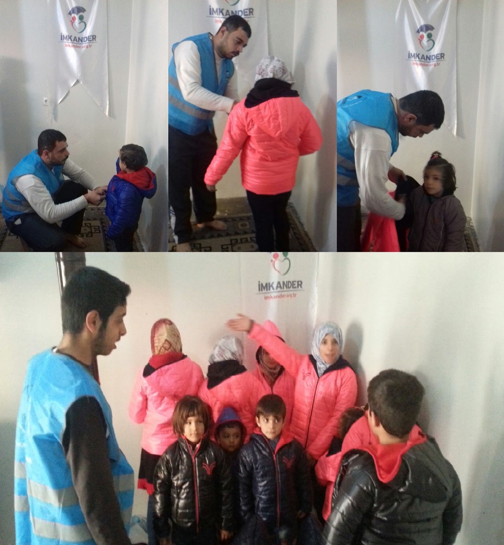 İnsanı Müdafaa ve Kardeşlik Derneği'nce (İMKANDER) "Bir Kış Hiçbir Çocuk Üşümesin!" kampanyası kapsamında, Suriyeli 500 yetim çocuk ve ailesine kıyafet yardımı yapıldı.