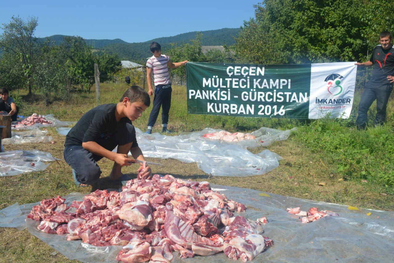 Çeçenistan sınırındaki Çeçen Mülteci Kampı Pankisi'ye ulaşan İMKANDER ekipleri burada da ihtiyaç sahiplerine kurban eti dağıttı.