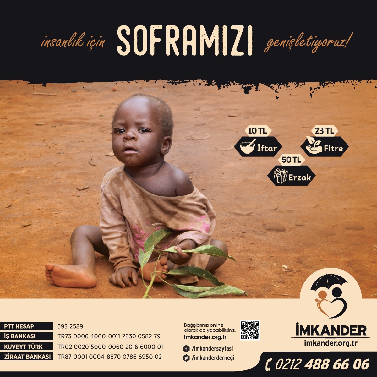 Her yıl olduğu gibi bu Ramazan ayında da Afrika'da, Suriye'de ve Gaziantep'te kurulan sofralarda binlerce ihtiyaç sahibi için iftar sofraları kuruluyor. Bu soflarda binlerce ihtiyaç sahibiyle birlikte iftarlarımızı açıyoruz.Buralara milletimizin duasını ve selamını bu coğrafyalara iletiyoruz.