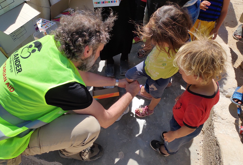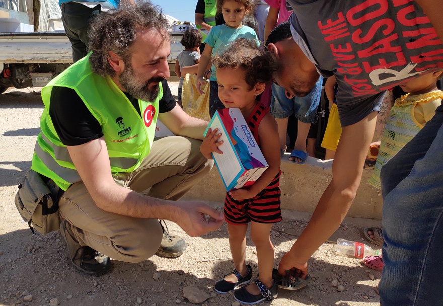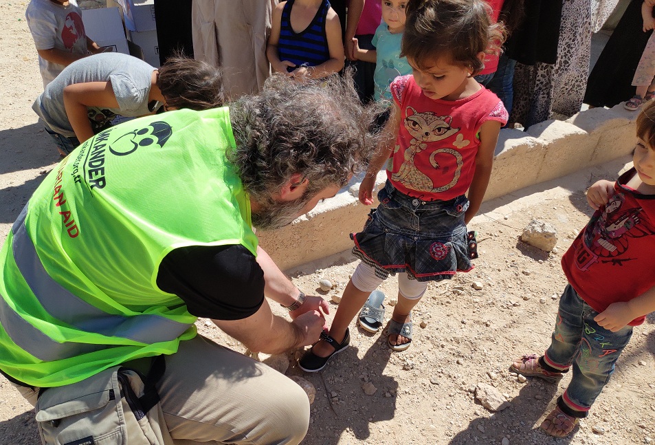 İMKANDER, TSK ve ÖSO'nun Fırat Kalkanı Harekatı'yla özgürleştirdiği Suriye El-Bab kentinde bulunan mülteci kamplarında yaşayan Gutalı çocuklara ayakkabı dağıtımında bulundu.