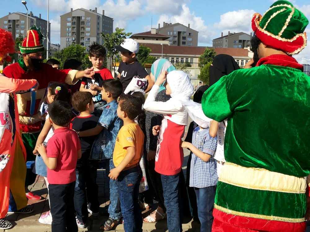 İMKANDER bayramlaşma programına katılan Suriyeli, Kafkasyalı ve Doğu Türkistanlı yüzlerce çocuk birlikte Nasreddin Hoca, Hacıvat Karagöz gibi etkinliklere katıldılar ve birlikte eğlendiler.